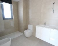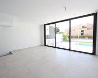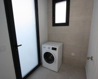 Dieses Modell hat 3 Schlafzimmer. Man betritt die Villa im Hauptgeschoss, wo man einen offenen Wohn-Ess-Küchenbereich vorfindet. Von diesem Bereich haben Sie direkten Zugang zur Veranda, zur Poolterrasse und zum Garten. Die Küche ist komplett ausgestattet. Auch eine Gästetoilette und eine Waschküche befinden sich auf dieser Etage. Eine Treppe führt in das Obergeschoss, wo sich 3 Schlafzimmer und 2 Bäder befinden. Der Keller beherbergt die Garage für 2 Autos, einen Abstellraum und ein Badezimmer.