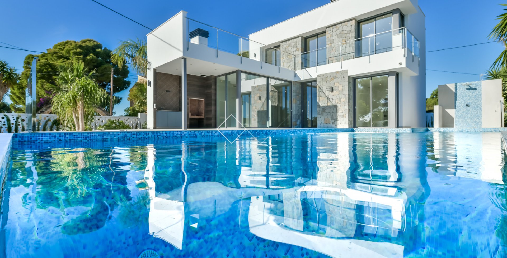 Projet de villa moderne avec d'excellentes vues panoramiques sur la mer sur un terrain spacieux. De toutes les pièces, vous pouvez profiter de la vue sur la mer Méditerranée.