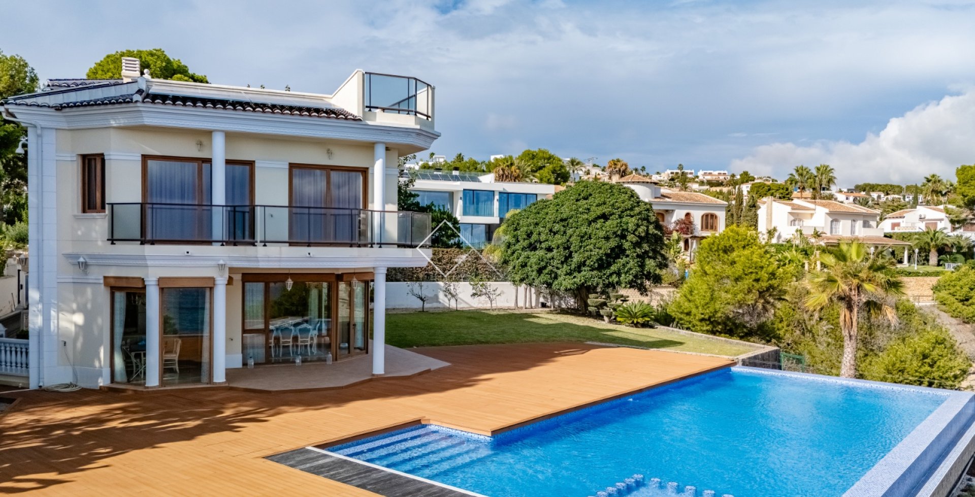 Omgeven door groen en ontworpen voor maximale privacy, staat deze villa op een dubbel perceel dat een gevoel van ruimte en vrijheid biedt. Het grote terras met uitzicht op zee is perfect om te ontspannen en ongestoord van het uitzicht te genieten.