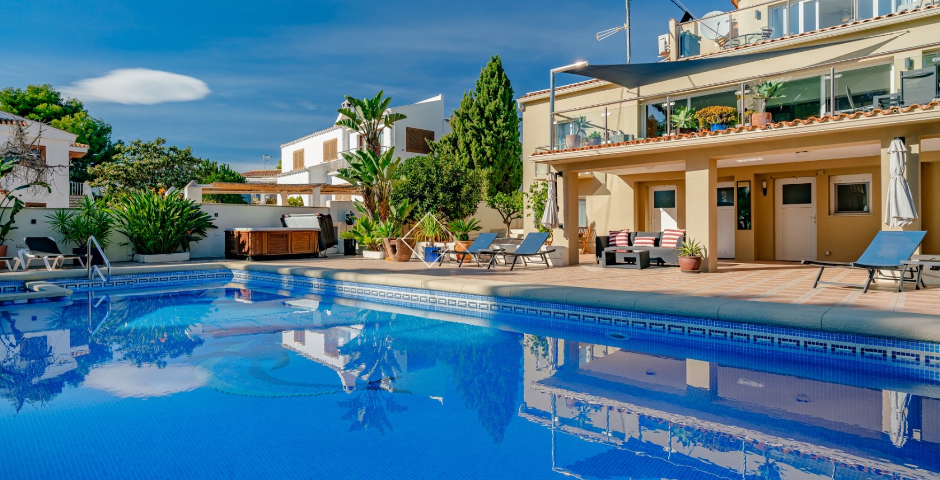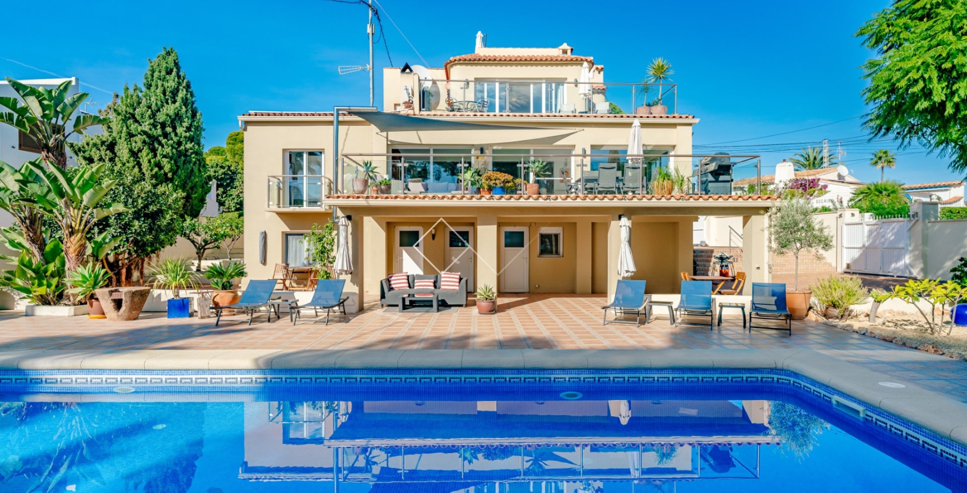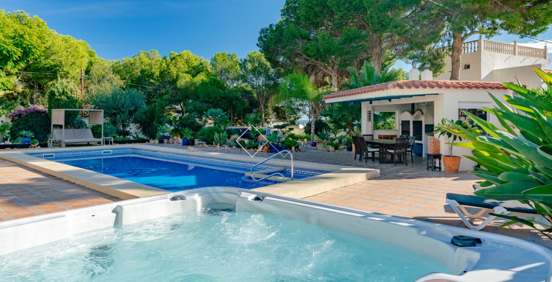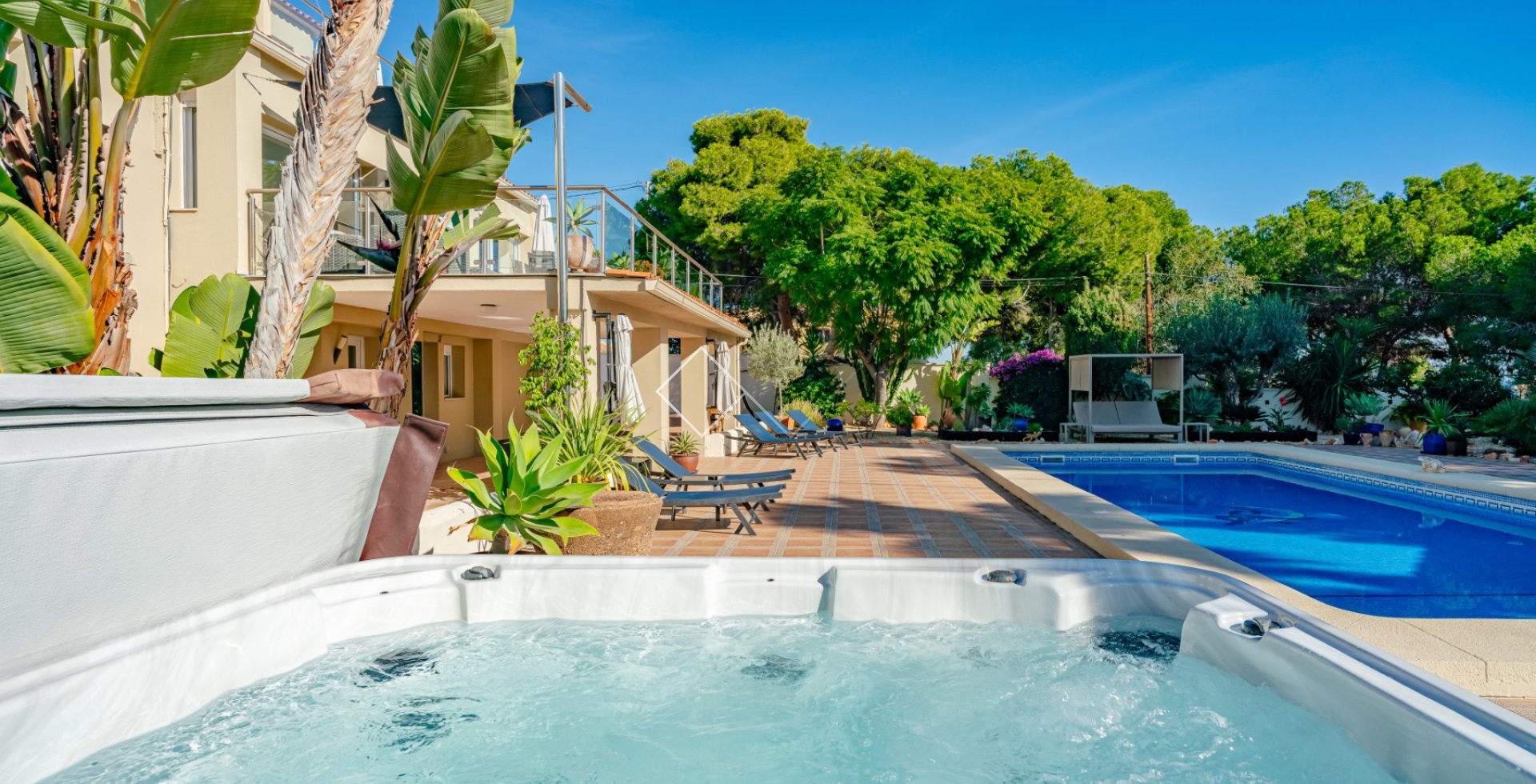 Geniet van lange zonnige dagen naast het zwembad, omgeven door groene tuinen die privacy en harmonie bieden. Elk detail is ontworpen voor jouw ontspanning en comfort.