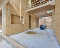 The living area is on the upper floor. Here we have a large open space for the lounge, dining table and the open plan kitchen. Kitchen comes with cooking island and is fully equipped. Also a bedroom en-suite and guest toilet on this level. On the lower floor we find 3 bedrooms en suite, a sitting area and laundry. Underfloor heating, airconditioning, alarm, led lights, aerotherm installation. Garage for 2 cars.