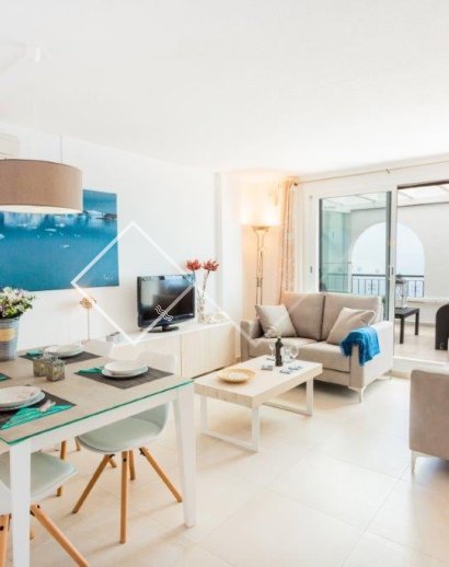 These flats for sale in Calpe are located in one of the Topacio buildings right on the beach. Close to the centre of Calpe and the salinas with its pink flamingos. At walking distance from La Fossa beach, a lovely long sandy beach with promenade with shops and eateries.