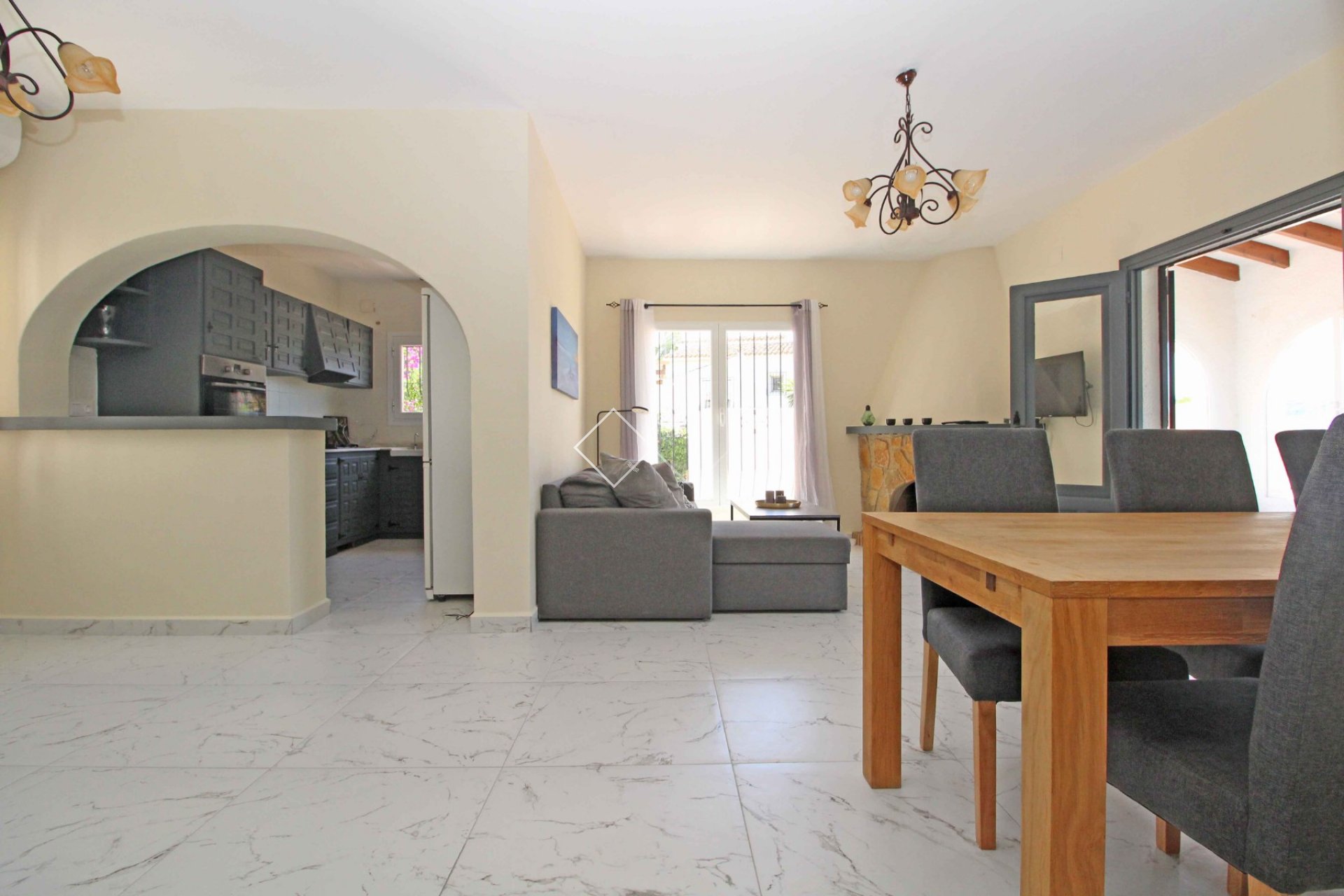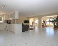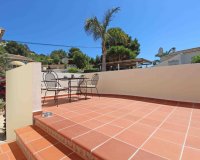 Very good villa for sale in Moraira in the urbanisation Villotel. Set on a nearly flat plot and with nice open views. The big Mercadona supermarket is only 650 m away. And it is a short drive to the popular village of Moraira and its sandy beaches.