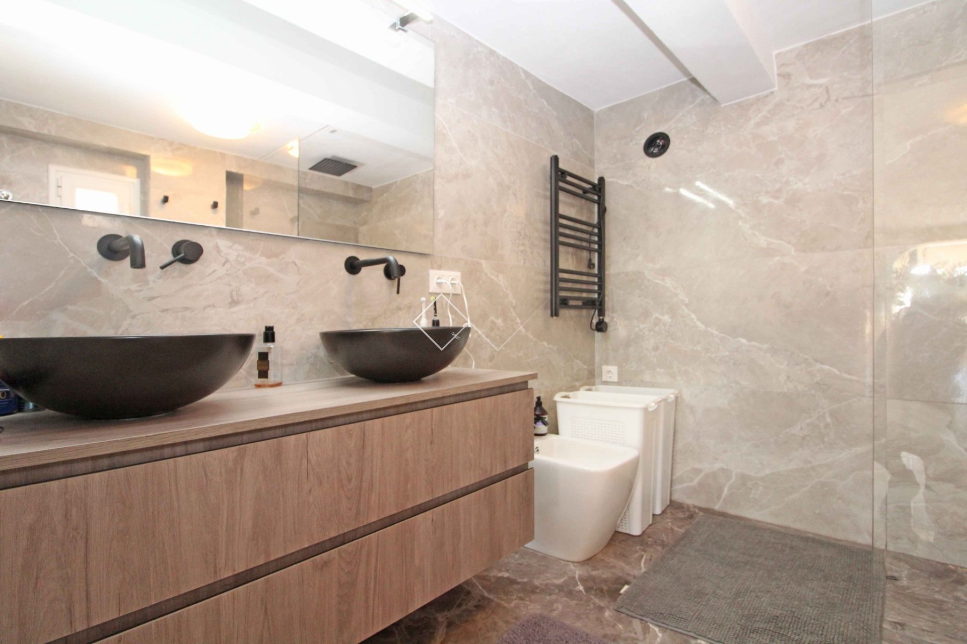 The villa is divided in 2 floors, each being a separate accommodation. The main accommodation has a spacious living-dining room with open plan kitchen, 2 bedrooms and 2 bathrooms. The other floor hosts a living-dining room, kitchen, 2 bedrooms and a bathroom. The property is traditional but has a modern look.