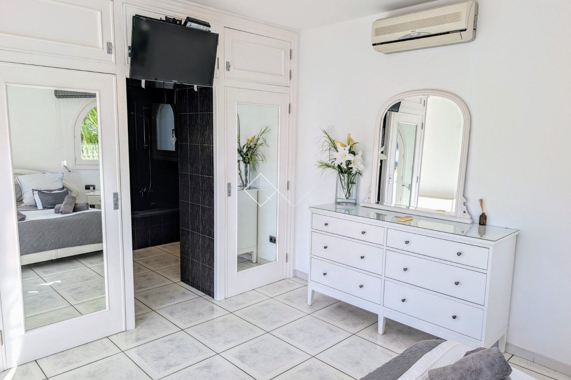 Your very own Oasis in Sol Park, Moraira Prepare to fall in love with this immaculately maintained and renovated luxury villa, perfectly positioned in the sought-after Sol Park neighborhood of Moraira. Offering a rare blend of privacy and convenience, this stunning residence sits on a terraced plot within a quiet cul-de-sac all while being a pleasant, flat walk from the sparkling Mediterranean and the vibrant town centre. The Grand Entrance & Open-Plan Heart Step through the elegant covered porch and into a world of "wow." The ground floor reveals a superb, luminous open-plan living space designed for both relaxation and high-end entertaining. The Chef’s Dream: A luxury kitchen featuring crisp white units, matt Silestone worktops, and premium Bosch appliances. It’s fully equipped with a walk-in pantry and a social central island with stool seating.Dining & Lounging: Flow seamlessly from the dining area into the light-filled relaxing zone. For more formal gatherings, double glass doors lead to a spectacular circular dining room with direct access to the pool terrace.The Master Retreat: Also on the ground floor, the master suite is a sun-soaked sanctuary with three windows and double glass doors to the pool terrace. It features mirrored wardrobes and a stunning en-suite with a double-basin vanity and a large bath with shower attachment.Second bedroom: Spacious bedroom with ample wardrobes and double glass doors leading to the pool terrace situated next to the striking house bathroom including double-basin vanity and bath with shower attachment Upper-Level Luxury & Sea Glimpses Scale the impressive granite and tile staircase to find a floor dedicated to rest and views. The Viewpoint: A part-covered terrace offers lovely open vistas and a glimpse of the sea.The Guest Suite: A spacious, bright bedroom boasting two Romeo & Juliet balconies with double glass doors. This room features its own private open terrace—complete with a corner sofa, coffee table and a large parasol—and a modern en-suite with a walk-in shower and vanity unit. Resort-Style Outdoor Living The outdoor space is truly the "main event." Every ground-floor room opens onto the expansive private pool terrace, creating a seamless indoor-outdoor lifestyle. The Pool: A magnificent 10 x 4m heated pool, renovated in 2024 with brand-new LED lighting for evening swims.Alfresco Dining: Enjoy the Mediterranean breeze with a built-in grill/BBQ and a remote-controlled awning for perfect shade.The Grounds: The villa is surrounded on all four sides by lush lawns and mature Mediterranean plants and trees, all kept vibrant by an auto-irrigation system. The Finer Details This is a "just bring your suitcases" property, offered fully furnished and packed with modern comforts: FeatureDetailsYear Built/Status1991 (Immaculately maintained and renovated)Climate ControlUnderfloor heating & Air conditioningSecurity/TechAlarm system & Integrated sound systemWindowsDouble glazed with shuttersBasementLarge garage, technical/utility room, and an undeveloped under-build.ParkingAccess from two sides; off-road parking for two cars plus a double garage with off-road parking in front.Annual Taxes1168€ (Total Property & Rubbish Tax) Location & Lifestyle Sports & Leisure: A very short walk to tennis/padel courts, a chemist, and a charming cafe/bakery.Beaches & Town: A flat 2.3km walk to the beach and 2.6km to the Moraira town centre.Golf & Travel: 5km to the golf course and 8.1km to the motorway access in Benissa. Note: Viewings for this exceptional villa begin March 9th. Don't miss your chance to own a piece of paradise.